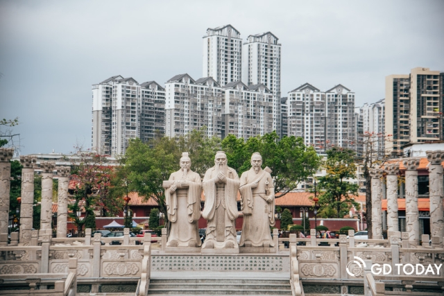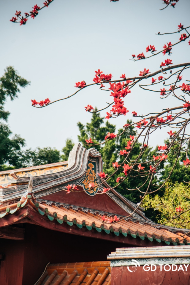 The Jieyang Confucius Academy, established in 1140, covers over 20,000 square meters and features 21 individual buildings. With its Ming and Qing architectural styles and distinct Chaoshan characteristics, it stands as the largest and best-preserved Confucian academy in the Lingnan area. Its red walls, sweeping eaves, stone paths, and surrounding trees create a harmonious and picturesque setting.