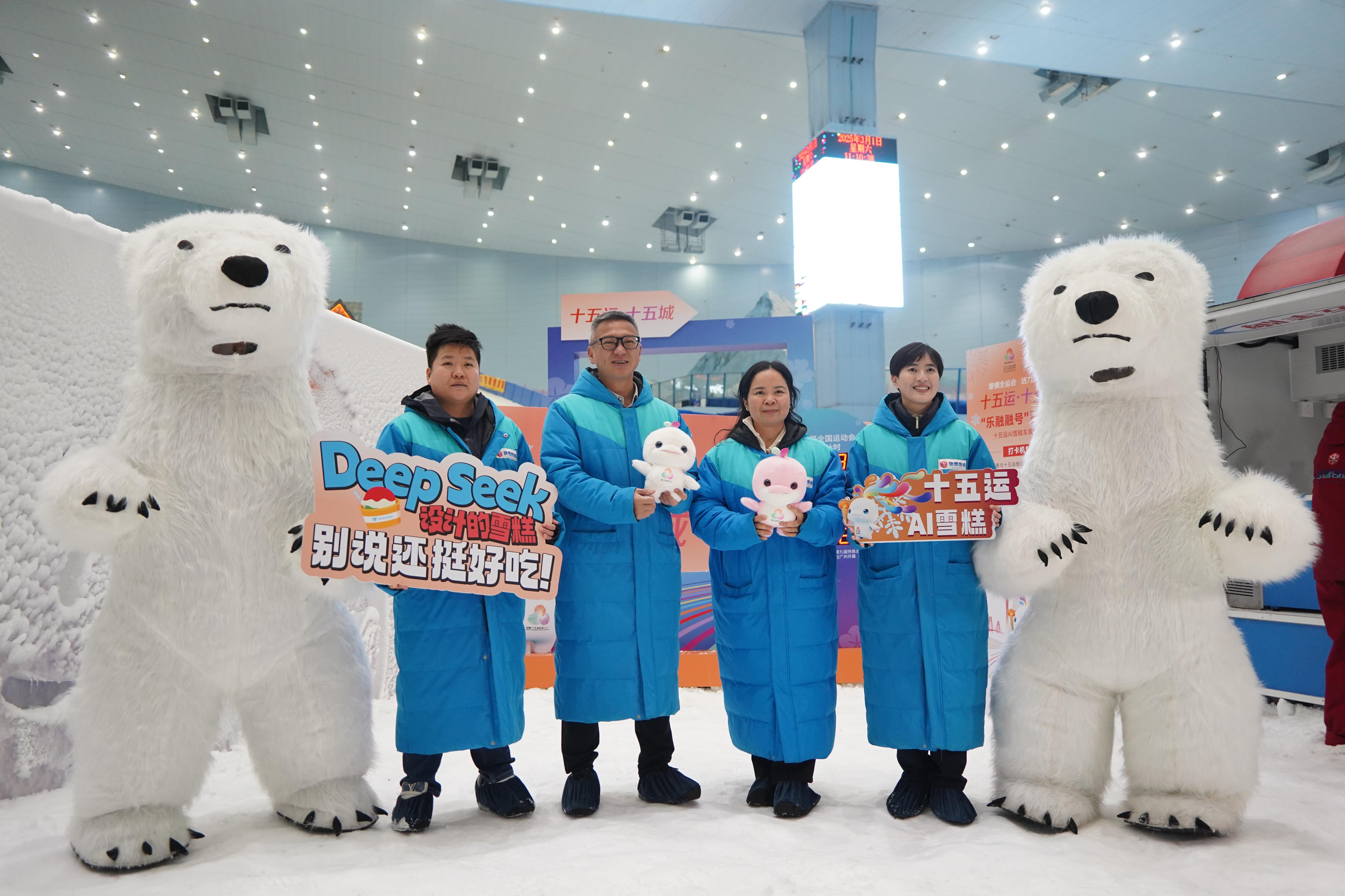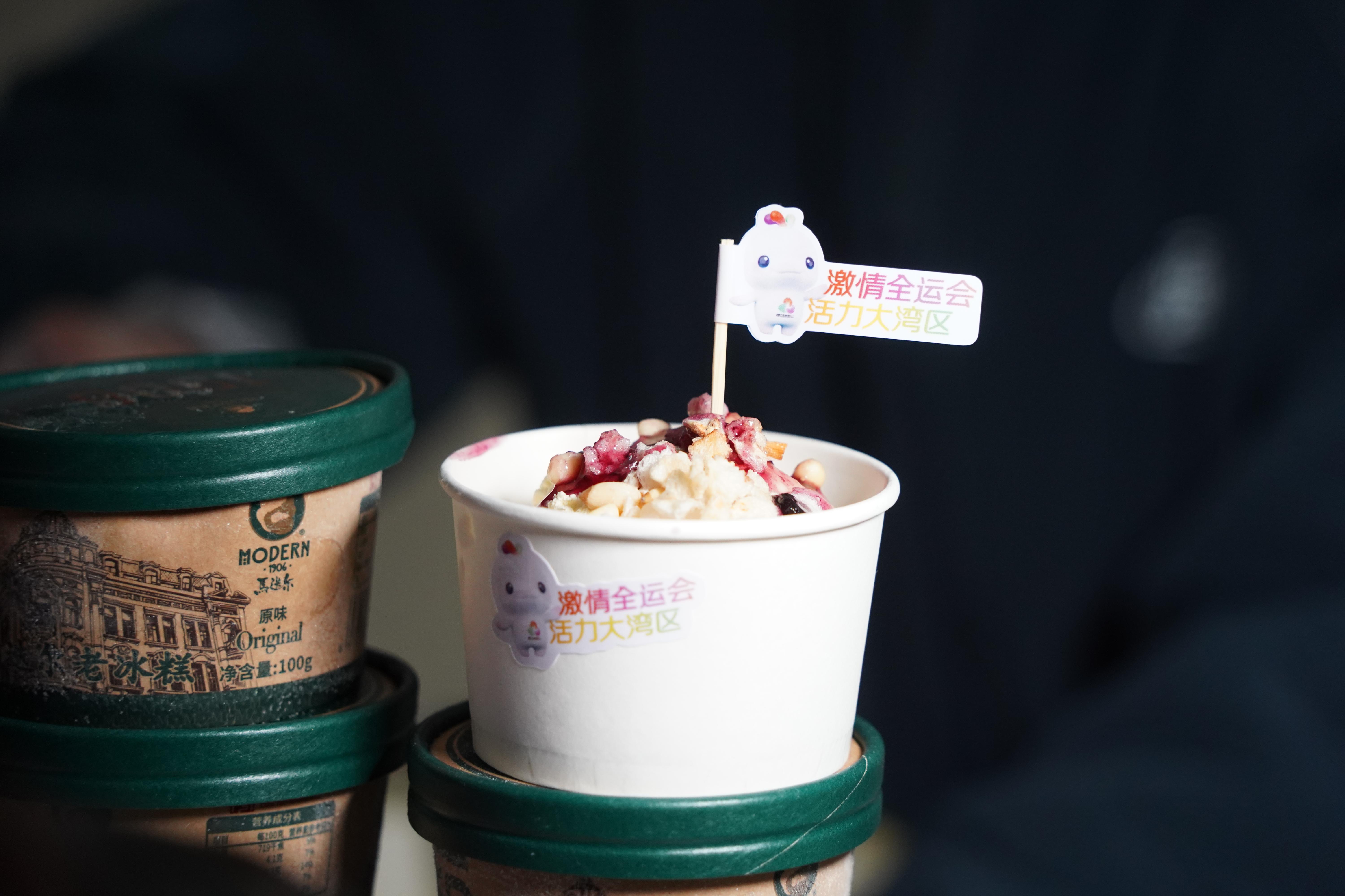 在三个会场,哈尔滨百年品牌马迭尔冰糕与广州本土品牌五羊雪糕联动推出的“十五运AI雪糕”成为焦点。这款雪糕由DeepSeek设计,融合了广州的荔枝、马蹄和哈尔滨的松子、蓝莓等元素,以数字化技术实现南北文化符号的灵动碰撞。市民品尝雪糕的同时,还可线上观看雪糕设计过程视频,体验科技与文化的交融魅力。活动现场气氛热烈非凡,两地市民踊跃参与,共同喊出 “激情全运会,活力大湾区” 等十五运会口号,将广州与哈尔滨的全运氛围推向高潮。