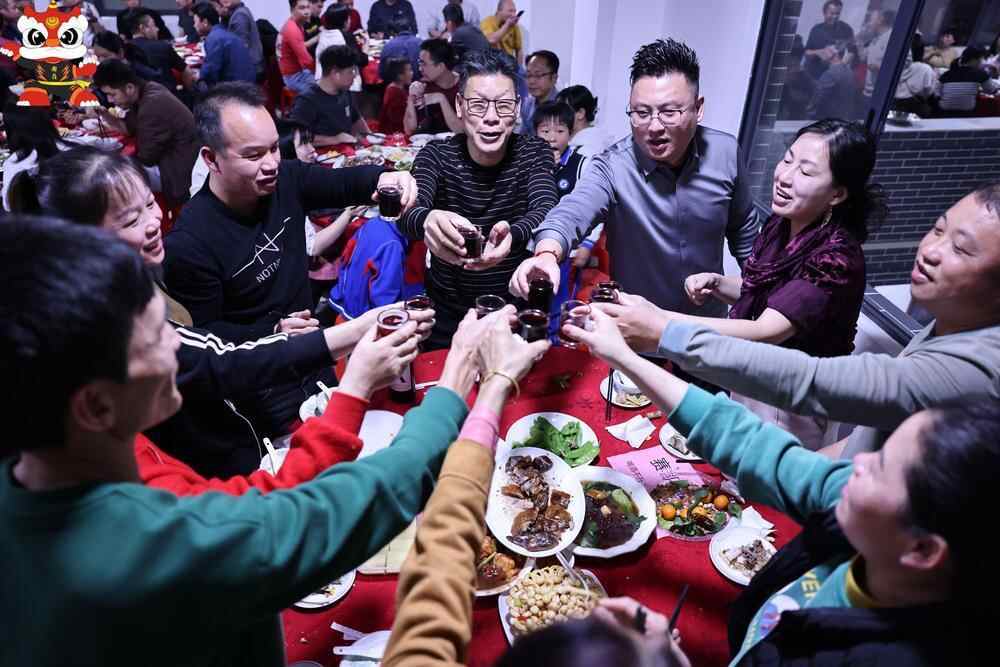 南岭村党委书记周大勇介绍,南岭村始终保持团结一致,共谋发展的村风民风。“正月十七闹元宵”最初起源于20世纪90年代,以前受限于经济条件,村民自发捐粮献菜、支灶共炊年宵饭,宴请的对象主要为村中年满60岁及以上长者。直到21世纪初,随着村集体经济不断壮大,村委统筹资金,举办全村年宵团圆宴,并加入醒狮表演等传统文化元素,将正月十七闹元宵的活动当作一种文化传承下去。