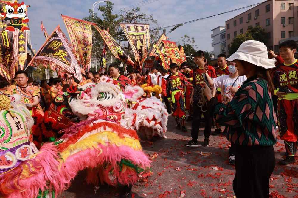 同时,来自粤港澳大湾区包括广州周边地区友好村以及佛山、中山、香港等25支狮队共60余头醒狮前来助兴,为全村居民群众贺元宵、送福气。
